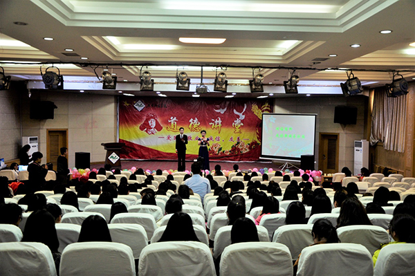 12月8日下午,由校文明办主办,服装学院承办的第三十九期道德讲堂在图教201举行。服装学院党政领导和学生代表200余人参加了活动。