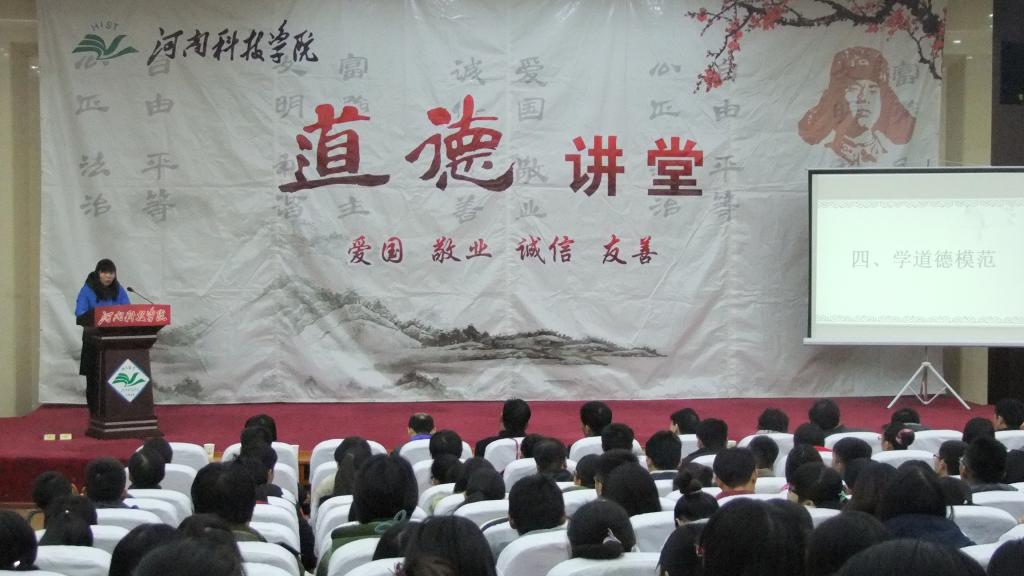 12月12日晚,由校文明办主办,数学科学学院承办的第二十四期道德讲堂在办公楼三楼多功能报告厅举行。校党委宣传部、数学科学学院等相关单位负责人及数学科学学院师生代表300余人参加了活动。
