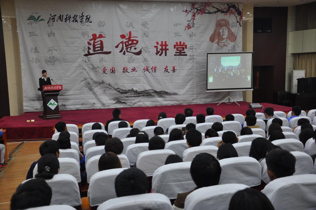 10月29日,由校文明办主办,资源与环境学院承办的第十七期“道德讲堂”在办公楼三楼多功能报告厅举行。校团委、资源与环境学院等单位负责人及学生代表300余人参加了活动。