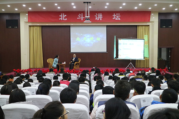 12月17日晚,以“分享人生阅历,感悟美国之旅”为主题的第十二期“北斗讲坛”在行政楼三楼多功能报告厅举行。河南师范大学“育人楷模特别荣誉奖”获得者、退休教授高明乾做客“北斗讲坛”。各学院团委书记、辅导员及学生团干代表参加了活动。