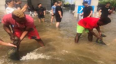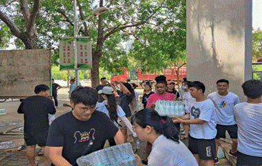 国际教育学院在校学生柏梦雨、单冰珂、耿亚飞、高祺轩、周书航、张万军、李俊阳、程玉龙、王志楠、陈威畅、梁飞积极响应学院号召,在保证自身安全的情况下,迅速投身抗洪抢险的队伍中,搬运沙袋以筑牢防线,分发救灾物资以保障温饱。同时,国际学生积极参加新乡市的抗灾行动,表现出大爱无疆、无私奉献、迎难而上的精神,为抗洪救灾注入“异国”力量,彰显了国际友谊、大爱精神!