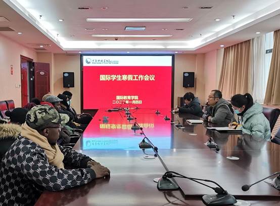 寒假临近,为扎实做好寒假期间国际学生的各项管理工作,1月4日上午,国际教育学院在行政楼901会议室组织召开国际学生寒假工作会议。学院党总支书记张平、教务科王君君、李智雯及国际学生参加了会议。