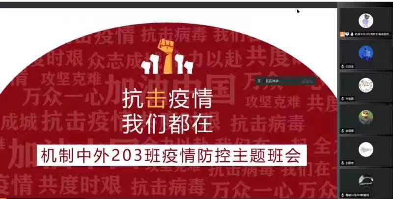 为筑牢学生安全防范思想防线,树立“每个人是自己健康第一责任人”意识,5月7日至8日,国际教育学院组织各班级采用线上会议形式,围绕疫情防控开展了“同心战役,守护美好校园”主题班会。