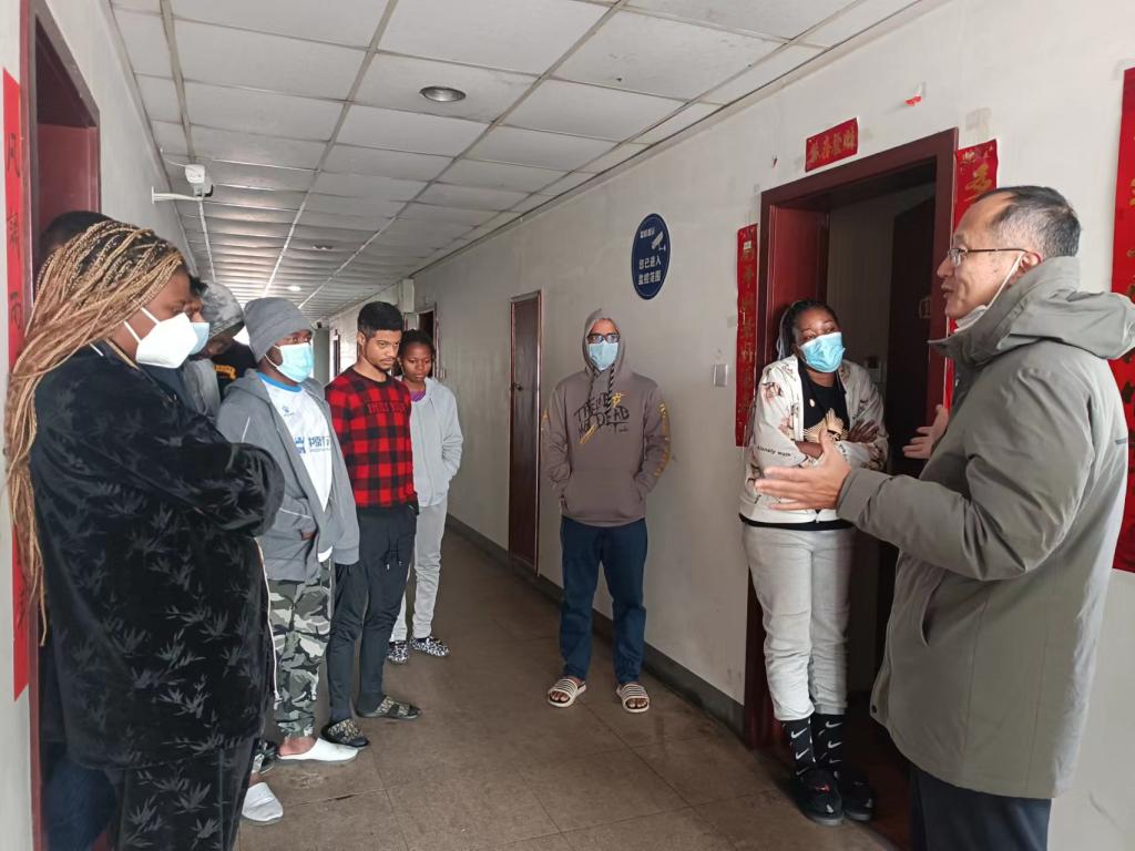 1月22日,农历正月初一,国际教育学院领导到国际生宿舍看望慰问寒假留校国际生,为留学生们送去新春祝福。