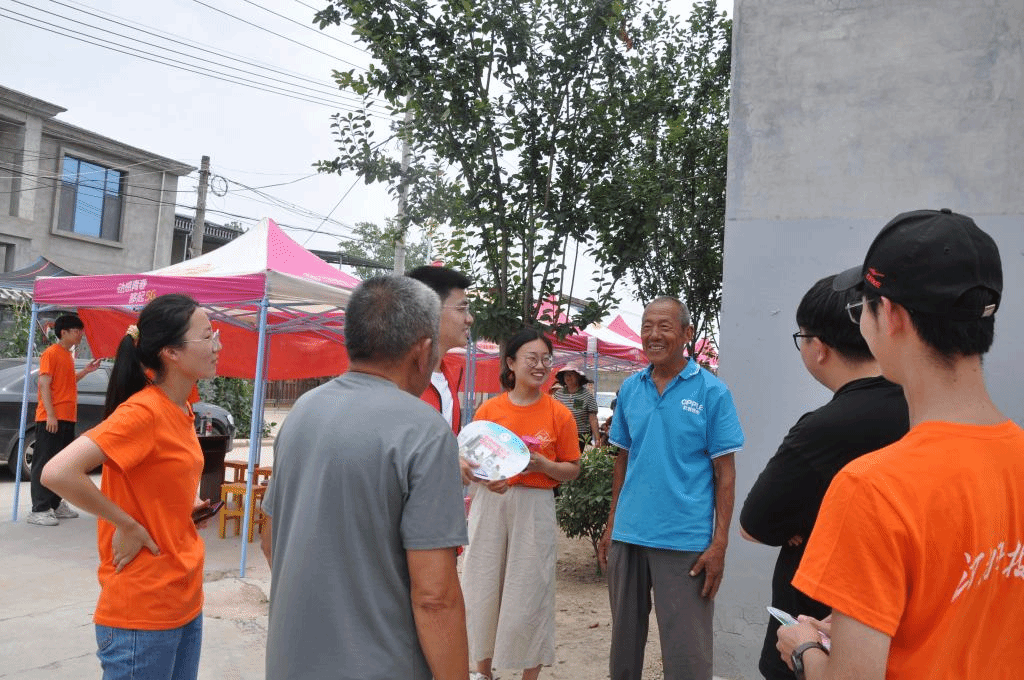 团队成员走入农户和老人们交流,了解他们的身体状况和生活环境,向他们普及老年人养生保健知识,送上关心祝福。老人们也向队员们介绍了家乡几十年来的发展变化以及国家对老年群体的各种福利政策,讲述他们那个年代的往事与艰辛。他们朴实的语言、动情的描述使队员们倍受感染,深切感受到当今幸福生活的来之不易。
