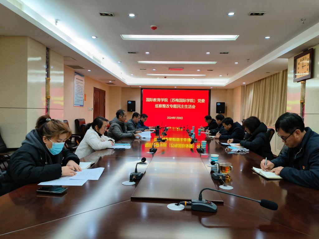 1月8日下午,国际教育学院(苏梅国际学院)党委在办公楼901会议室召开巡察整改专题民主生活会。巡察办主任樊跃峰,第五轮校内巡察第一巡察组组长高扬帆,巡察组副组长孙震寰,党委组织部副部长陈利,巡察组联络员、纪委第二纪检监察室主任李军庆到会指导。会议由学院党委书记张平主持。