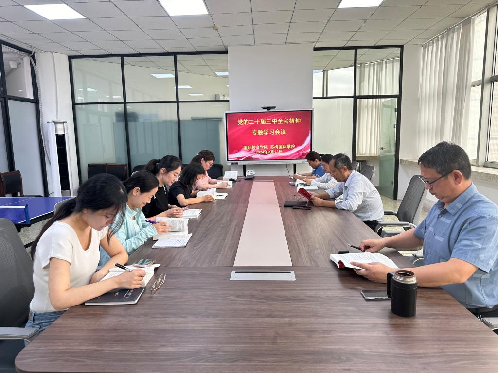 为深入学习贯彻党的二十届三中全会精神,9月13日上午,国际教育学院(苏梅国际学院)召开专题学习会,学院领导班子、全体教师参加会议。会议由学院党委书记主持。