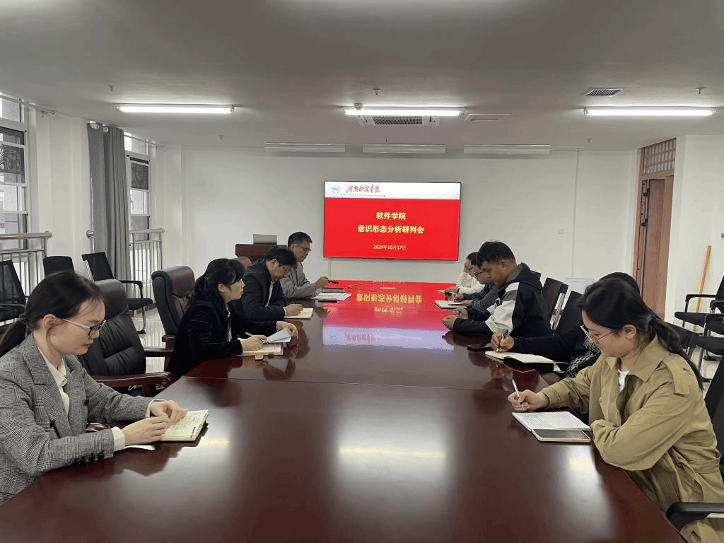 10月17日下午,软件学院在弘德楼A601会议室召开2024年下半年意识形态分析研判会。全体班子成员、党政办主任、团委负责人以及全体教师参加会议,会议由学院党委书记栗宁主持。