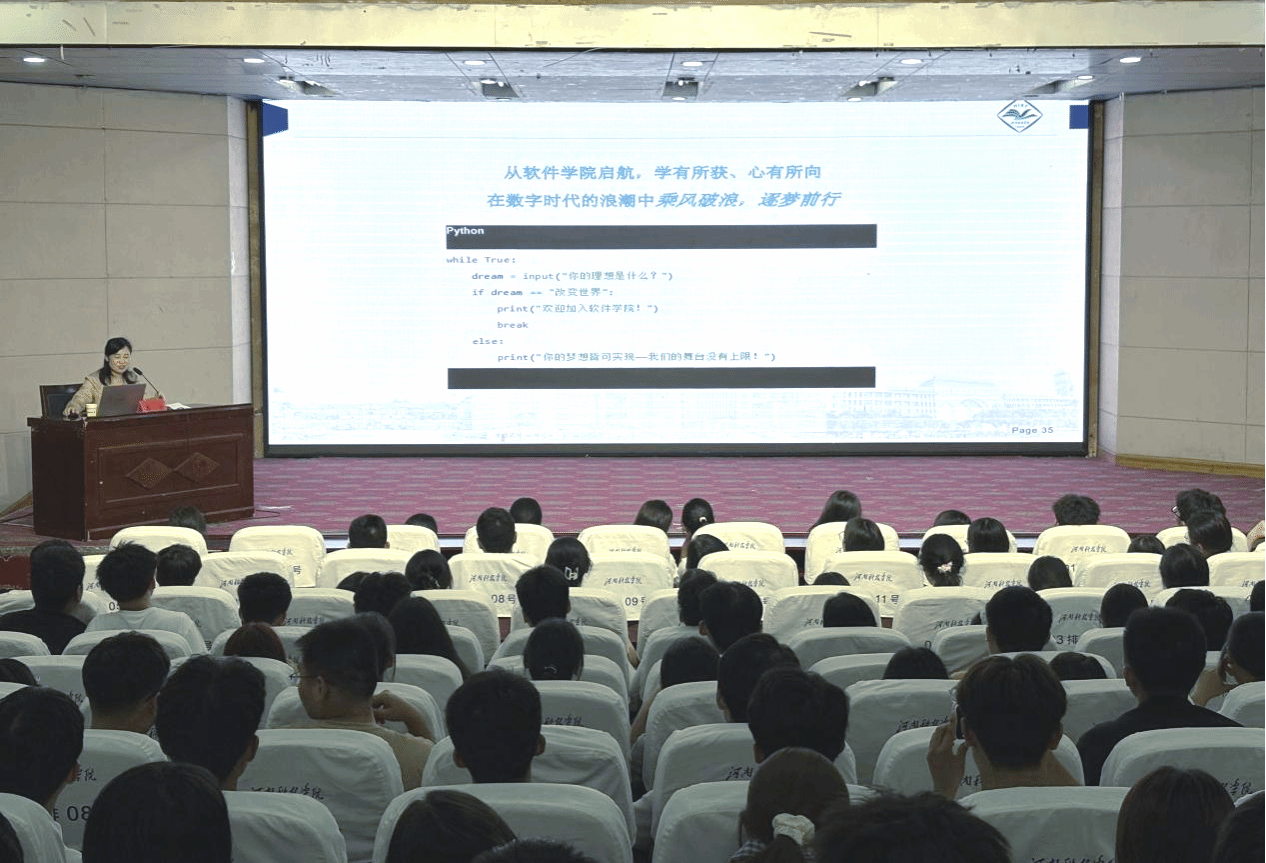 知是行之始,行是知之成。9月10日晚,软件学院开展第一期“知行”微课堂活动。学院党委书记栗宁以《用代码编织梦想,以创新定义未来》为题,在图教201会议室为2025级学生讲授入学思政课。作为学院思政教育的创新载体,“知行”微课堂通过轻量化、多元化、短时长的微讲座/短视频+实践模式,达到小课堂、大视野、深实践的目的,让思政教育真正“看得见、摸得着、做得到”。 大一新生共120余人现场聆听。