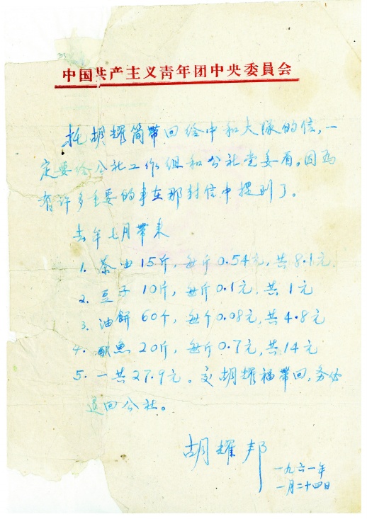 这封信的最后,胡耀邦又将上一年七月份收到的农产品一条条列举,按照产品在家乡的价值,共折算成27.9元,交胡耀福带回,退给公社。