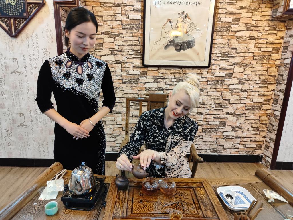 食品学院教师详细阐述了茶的起源、分类和冲泡方式。然后,伴随着典雅悠长的古琴曲乐,学生们展示了中华茶艺,温杯洁具、摇香传嗅、冲泡品茗。通过沏茶、赏茶、闻茶、饮茶、品茶,外籍教师们了解中华茶道礼仪,深度体验中国茶韵之美,感受中华茶文化的魅力。外籍教师还品尝了由学生亲手制作的精美甜点。活动现场,清茶飘香、美食共享,中华文化,源远流长。
