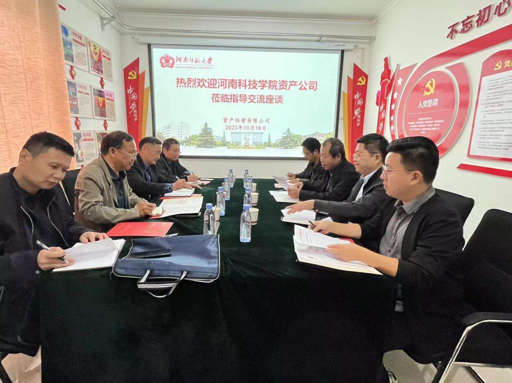 10月18日,河南科技学院资产经营管理有限责任公司党总支书记郎瑞红、总经理王锐一行4人到河南师范大学资产经营有限公司进行交流学习。
