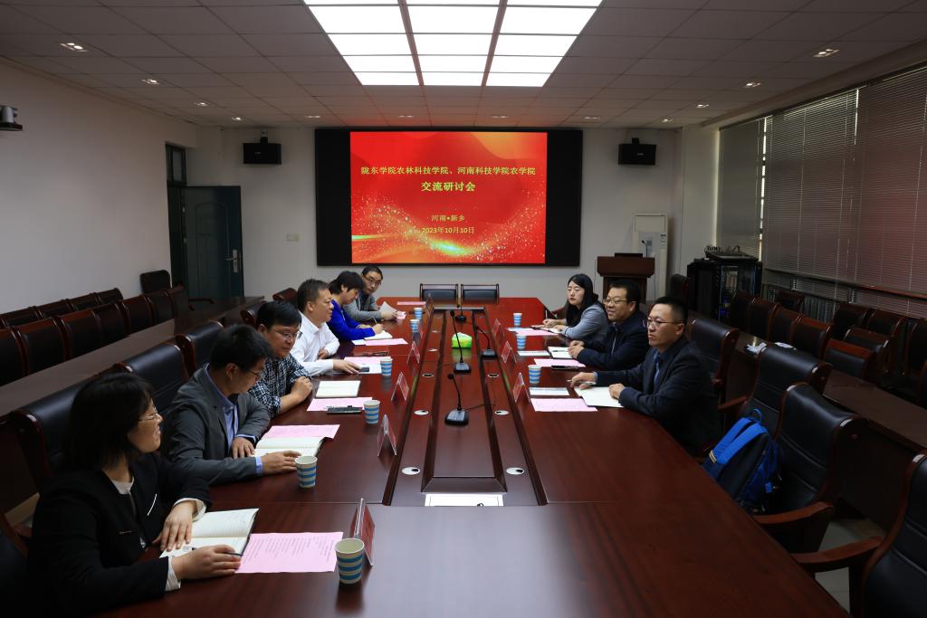 10月10日上午,陇东学院农林科技学院院长马剑一行3人到我院考察交流。农学院党委书记于江傲、院长胡海燕、研究生处副处长赵新亮及农学院班子成员参加交流。