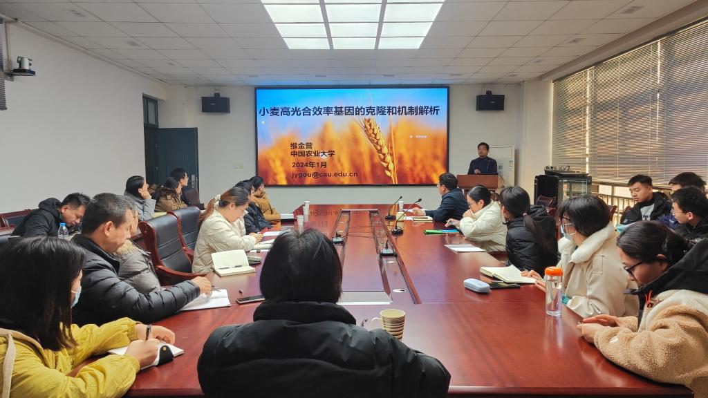 1月26日,中国农业大学缑金营教授应邀在农学院708会议室为我院师生作了题为《小麦高光合效率基因的克隆和机制解析》的学术报告,并对我院拟申报2024年国家自然科学基金的教师进行了申报指导,我院40余名师生参加了交流会,交流会由小麦中心主任陈向东主持。