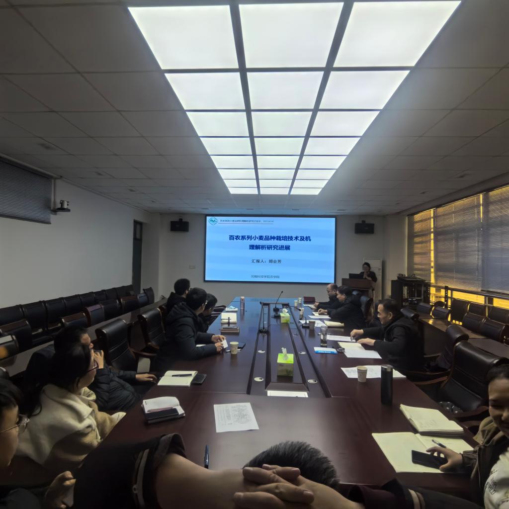 会上,学院12位教师代表分别从高光效形成机制、香气形成机制、远缘杂交新种质创制、抗病机制、抗旱机制及百农系列小麦高效栽培技术等机理研究方面介绍了个人对百农系列小麦的研究进展,并对预期成果及时间节点进行了汇报。