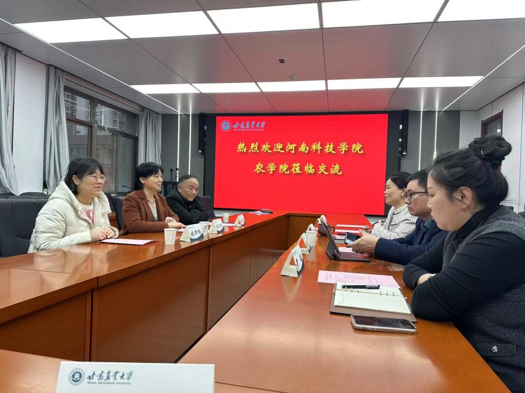 胡海燕简要介绍了河南科技学院农学院的历史变迁、学科建设、科技创新发展情况。她强调,双方应该在学位点建设、研究生招生和培养工作等方面加强合作,共同推进人才培养工作的高质量发展。随后,一行人参观了甘肃农业大学校史馆和干旱生境国家重点实验室。