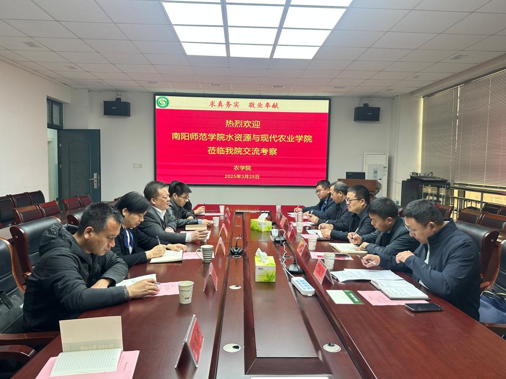 首先,于江傲代表我院对于南阳师范学院一行的到来表示欢迎。他从办学历史、学科发展、人才培养、科学研究等多个维度详细介绍了学校的基本情况,全面呈现了学校的发展脉络与办学特色。狄魁对我院的热情接待表达了诚挚的感谢,陈述了此次考察交流的目的,同时简要介绍了南阳师范学院水资源与现代农业学院的基本情况与特色。