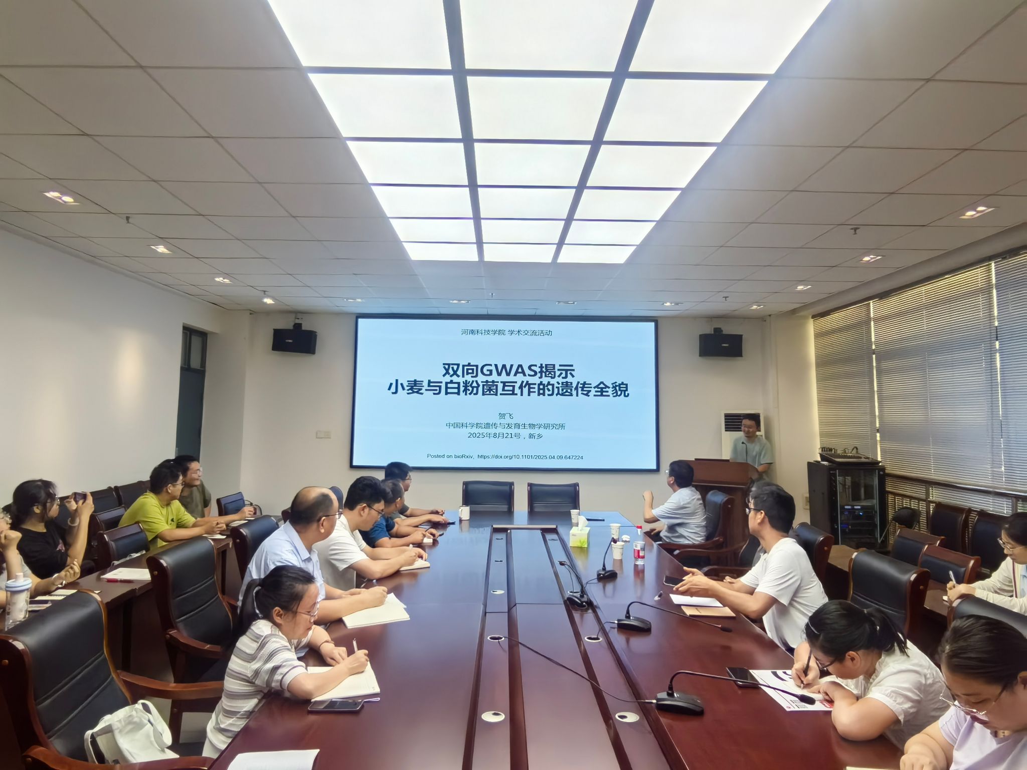 8月21日,中国科学院遗传与发育生物学研究所贺飞研究员应邀在农学院708会议室就小麦抗病性相关研究和国家自然科学基金申报经验等方面进行学术交流。农学院30余名师生参加了报告会,报告会由小麦中心主任陈向东主持。