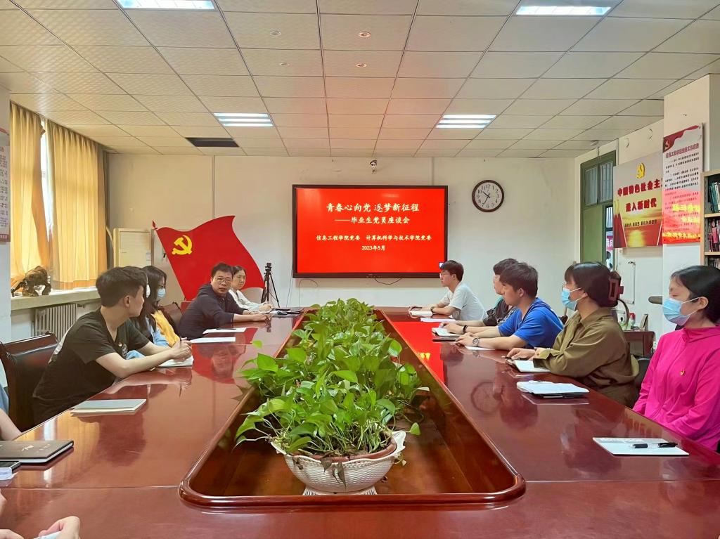 5月30日上午,计算机科学与技术学院和信息工程学院在0#502会议室召开“青春心向党,逐梦新征程”毕业生党员座谈会。计算机科学与技术学院党委副书记董华明、信息工程学院党委副书记王明艳及2023届毕业生党员代表参加本次座谈会。