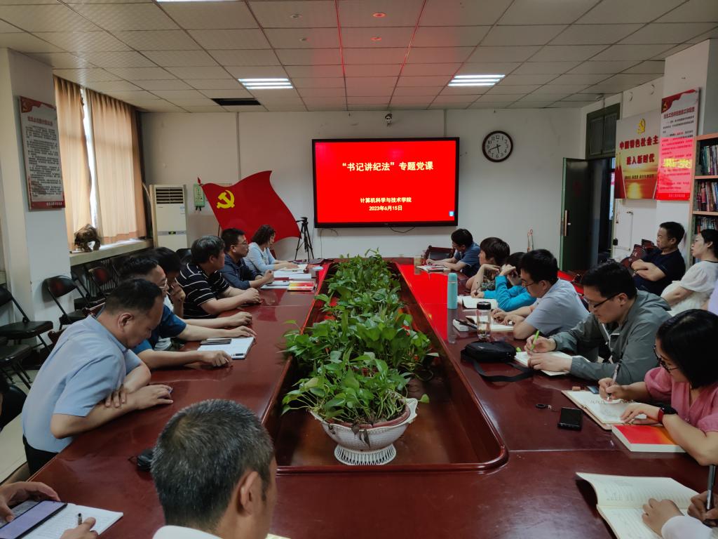 为推进学习贯彻习近平新时代中国特色社会主义思想主题教育,落实习近平总书记关于严明党的纪律和规矩的重要论述,全面加强党的建设,按照学校开展“明方向、立规矩、正风气、强免疫”专题纪律教育要求,6月15日,计算机科学与技术学院党委书记周启以“加强党的政治纪律和政治规矩教育”为题给全院党员讲授了纪律教育专题党课。计算机科学与技术学院全体党员聆听了党课。