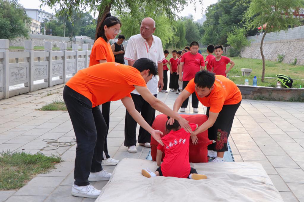 随后,学员协助米老师向暑期小学生爱好者传授武术技巧、自卫防身技能和暑期安全知识普及,让孩子们在武术中寻找乐趣,感受武术的魅力,进而加强学生自卫、防身意识并了解简单的自卫技能方法。