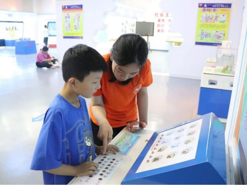 活动过程中,志愿者担当讲解员,引导小学生了解科技世界。馆内罗列的各种声、光、电、信息技术吸引着小学生参与探索。志愿者用通俗易懂、生动有趣的语言为小学生解释相关科技知识,让小学生观察、发现,并实际操作,感受科技带来的趣味体验。