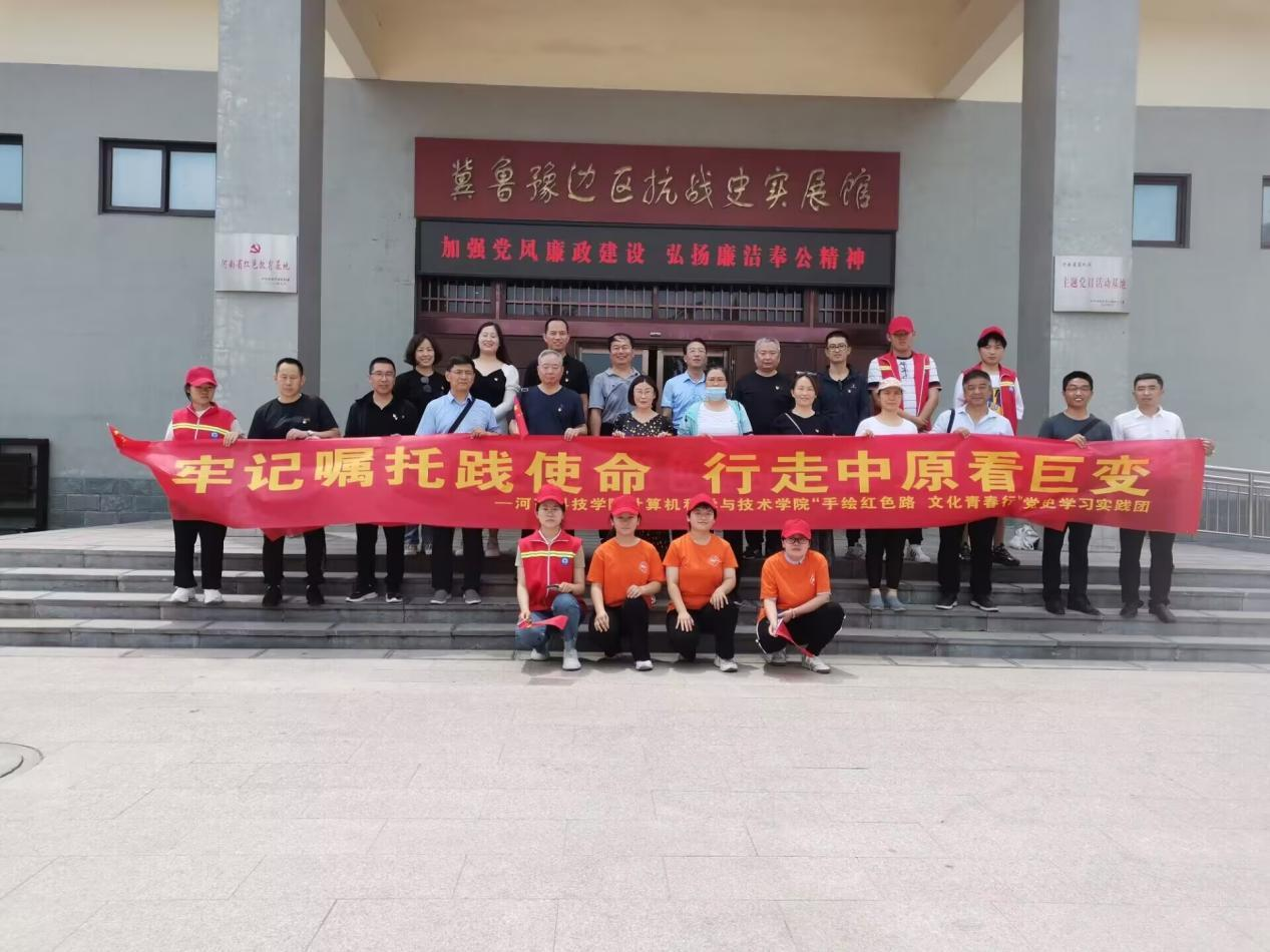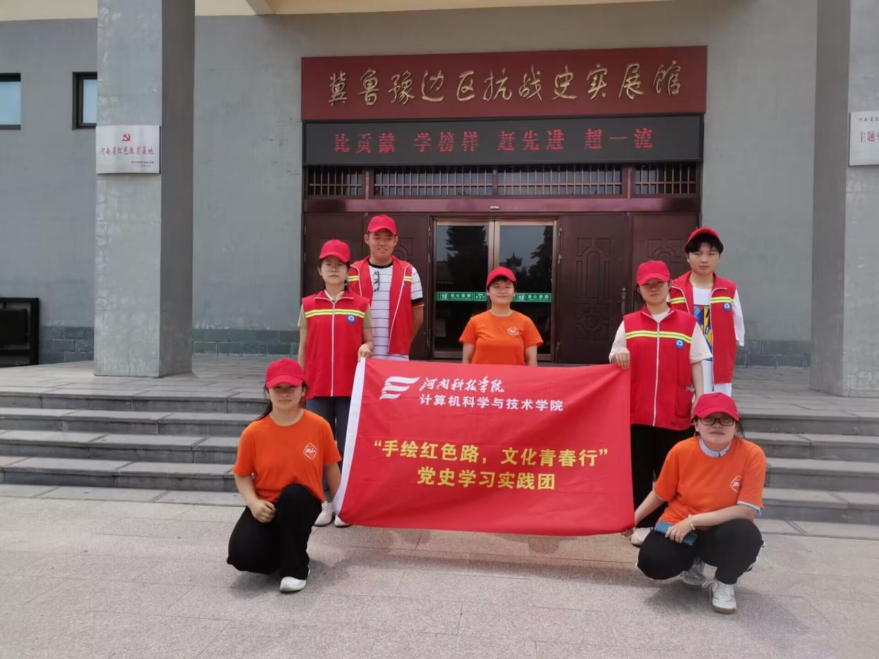 为深入开展学习贯彻习近平新时代中国特色社会主义思想主题教育,带动全校师生深刻把握新时代伟大成就,进一步落实“时代新人铸魂工程”。近日,计算机科学与技术学院“手绘红色路,文化青春行”党史学习实践团赴濮阳单拐革命旧址的冀鲁豫边区抗战史实展馆开展“牢记嘱托践使命 行走中原看巨变”暑期大思政实践活动。