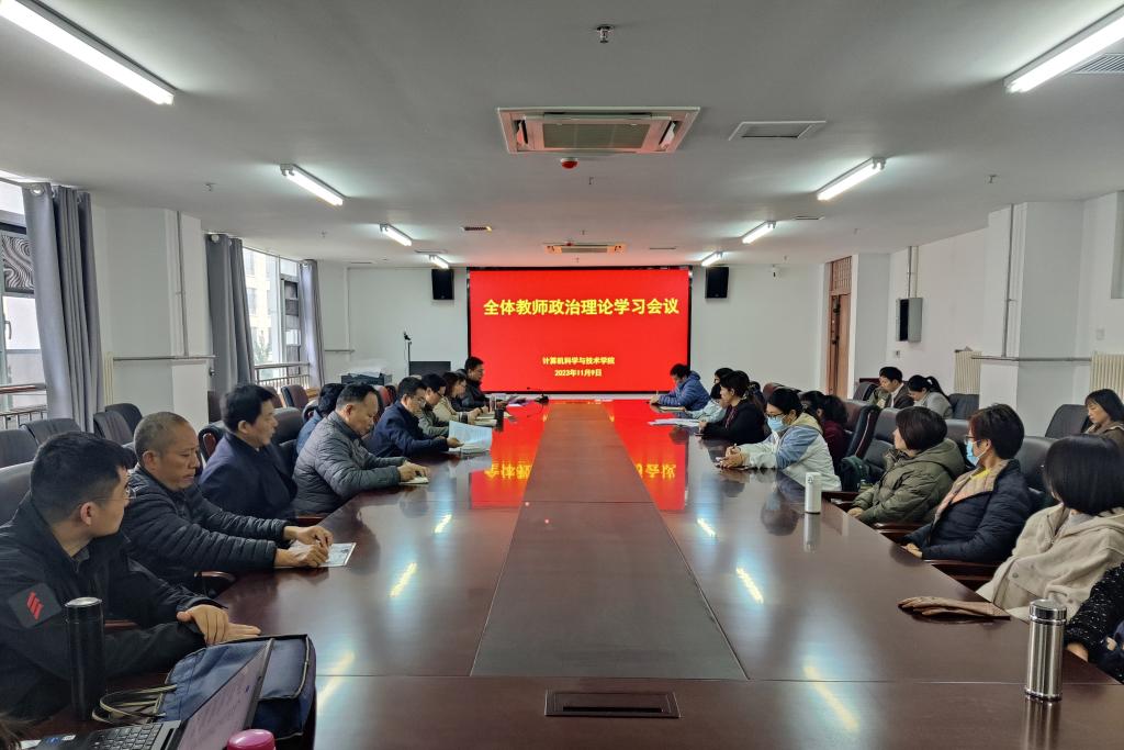 11月9日下午,计算机科学与技术学院在弘德楼A213会议室召开全体教师政治理论学习会议,学院党政领导班子及全体教职工参加了会议,会议由学院党委书记周启主持。