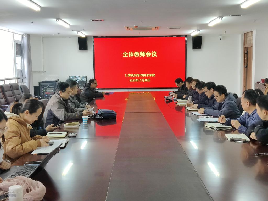 12月28日下午,计算机科学与技术学院全体教师会议在弘德楼A213会议室召开,会议由学院党委书记周启主持。此次会议旨在总结本学期工作,安排部署2024年主要任务。