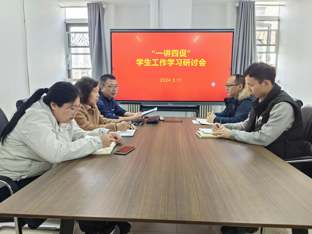 3月11日上午,计算机科学与技术学院在弘德楼A212会议室举办“一讲四促”学生工作学习研讨会,学院党委书记周启、党委副书记董华明、各年级辅导员参加研讨会。