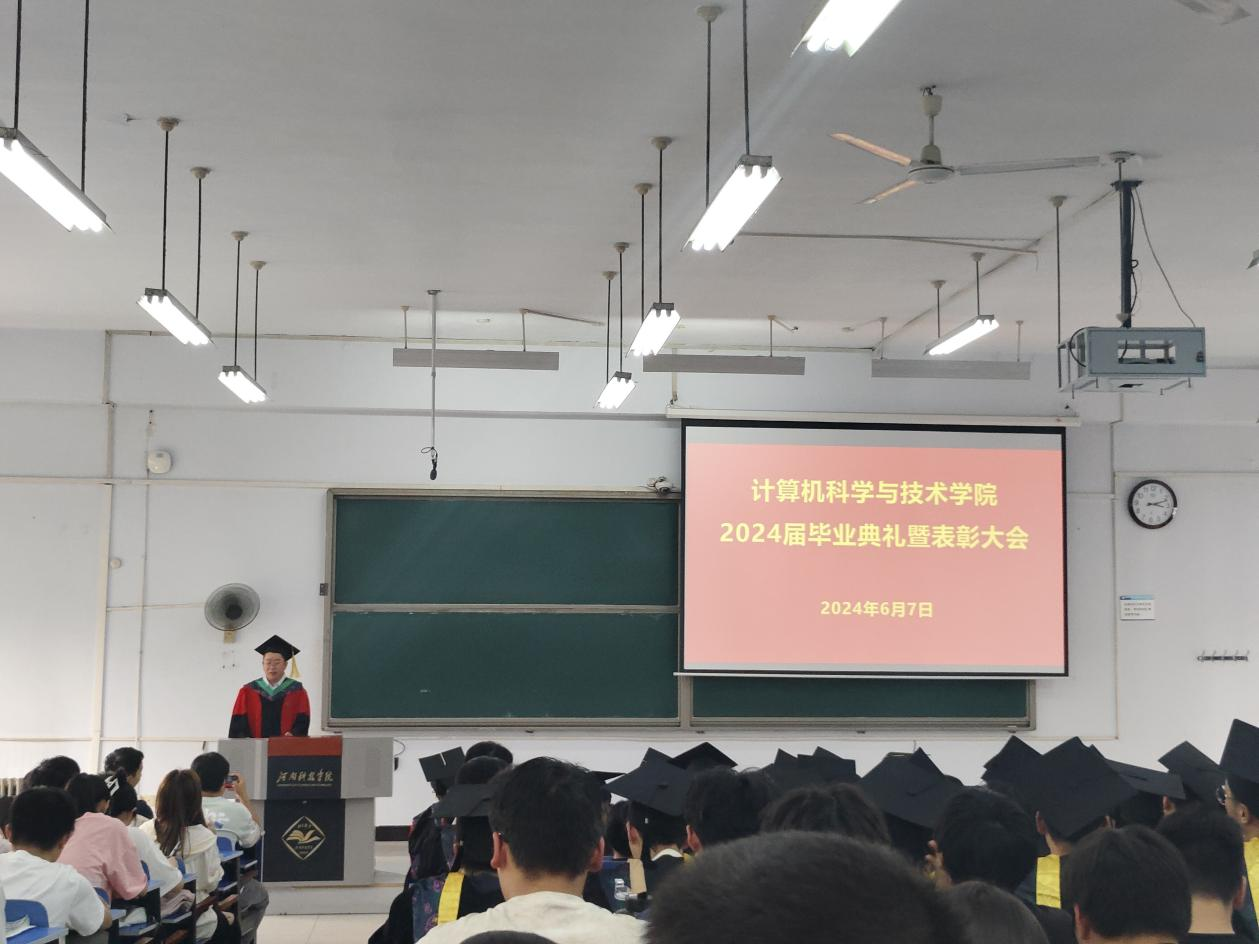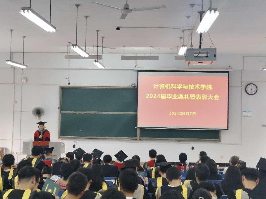 六月花海,青春绽放。6月7日下午,计算机科学与技术学院在三#四教室召开2024届毕业典礼暨表彰大会。学院党政班子成员、科级干部、全体辅导员老师、2024届毕业生和各年级学生代表出席了此次会议。大会由党委副书记董华明主持。