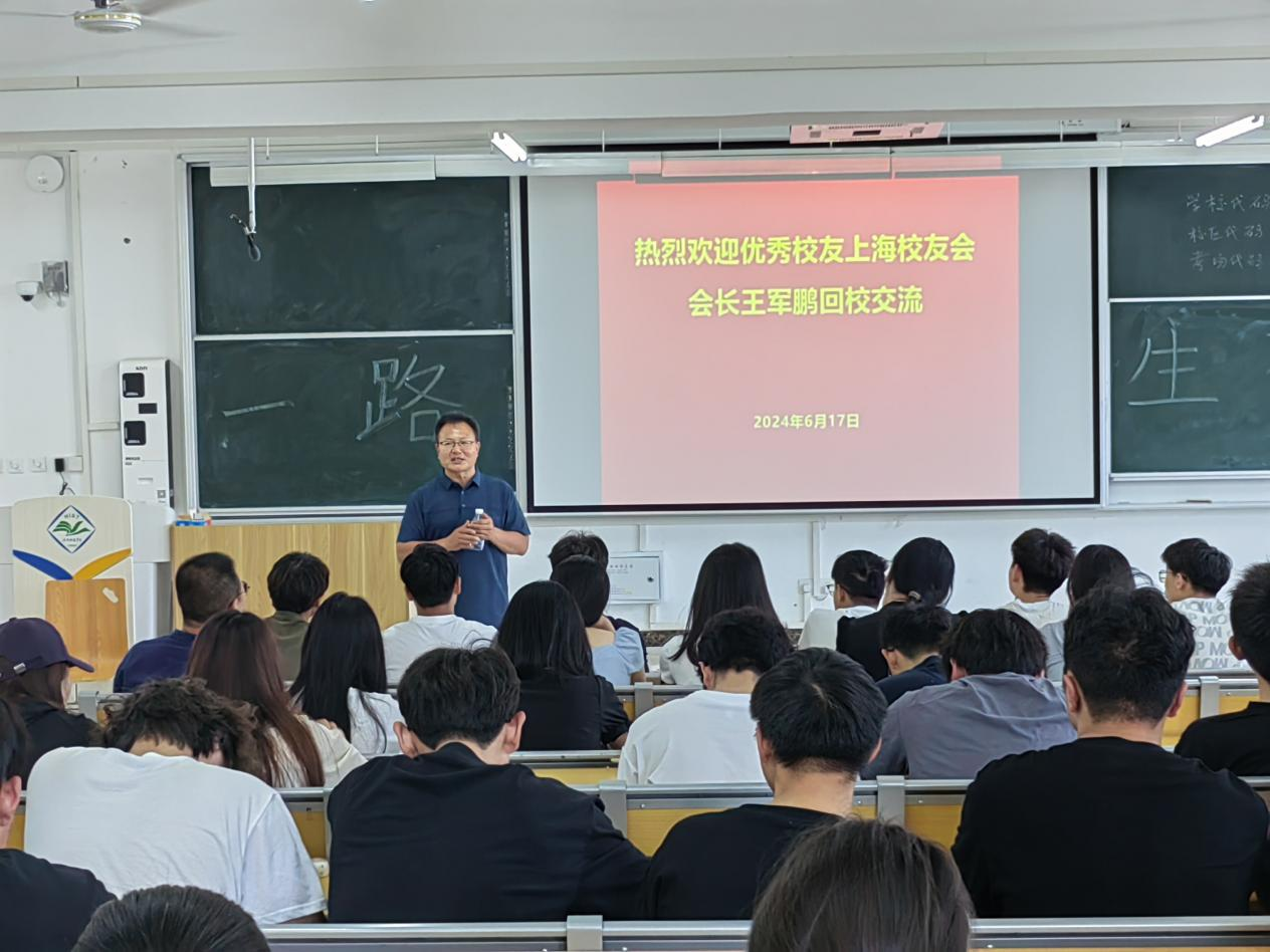 为贯彻落实“百农精神”大家谈活动方案,6月17日,计算机科学与技术学院邀请优秀校友、上海校友会会长王军鹏在弘毅楼合一多媒体教室为我院学生做成功经验分享。会议由学院党委副书记董华明主持,辅导员张敬敬及2021级学生等150余人参加。