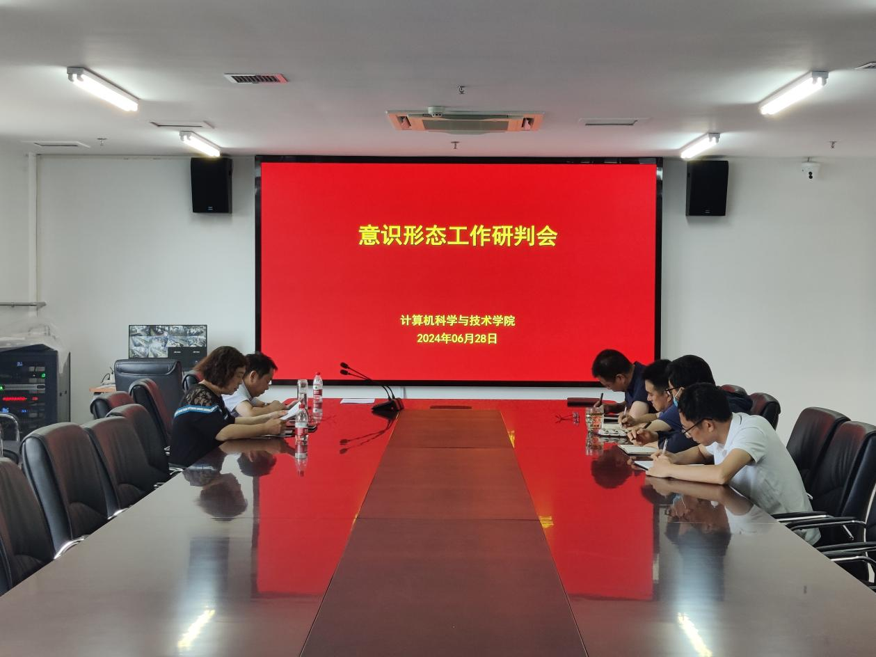 6月28日下午,计算机科学与技术学院在弘德楼A213会议室召开意识形态工作研判会。学院全体领导班子、党政办公室主任参与会议。会议由学院党委书记周启主持。