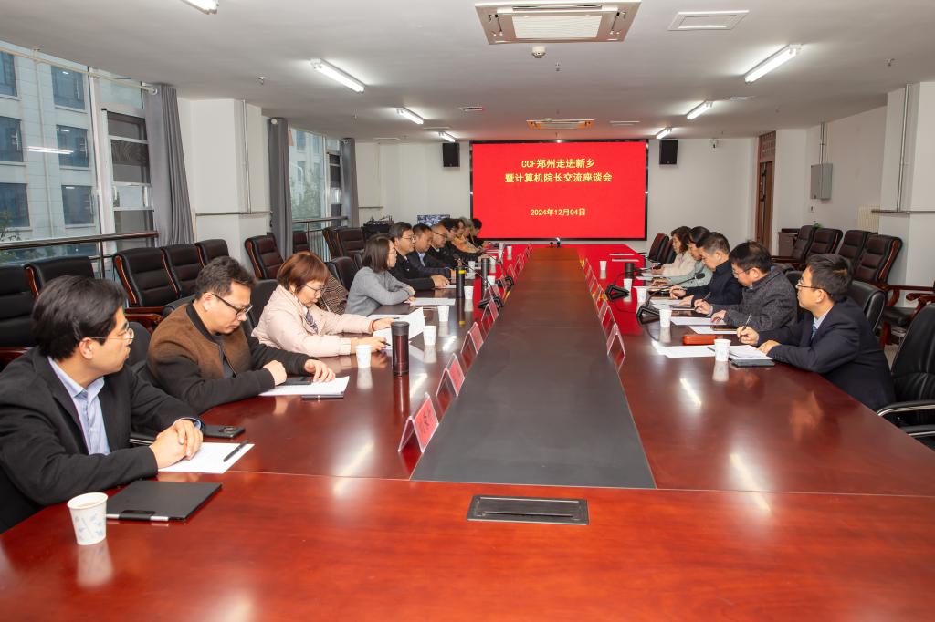 12月4日下午,CCF郑州走进新乡暨计算机院长交流座谈会在我校召开。本次会议邀请了CCF郑州主席吴怀广、CCF郑州副主席左宪禹、CCF郑州监委会主席张蕊、CCF YOCSEF郑州主席任建吉和来自河南大学、郑州轻工业大学、河南师范大学、河南理工大学、华北水利水电大学、新乡学院、河南工学院、新乡工程学院等高校计算机学院院长及相关专家学者齐聚一堂,围绕“CCF在新乡的发展与展望”这一主题展开深入探讨。会议由河南科技学院计算机科学与技术学院院长高国红主持。