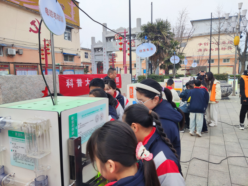 活动现场,满载着科学知识的“移动科技馆”科普大篷车为牛村小学的小朋友们带来了一场科普大餐。各种有趣的科普展品和互动体验装置,孩子们近距离感受到了科学的魅力。志愿者们现场讲解科学原理,鼓励大家动手操作,激发了孩子们对科学探索的浓厚兴趣。孩子们围在展品旁,眼睛里闪烁着好奇的光芒,不断提出各种问题,现场气氛十分热烈。同时,学院志愿者向广大居民发放《科普法》宣传材料,并详细讲解了新科普法的立法背景、主要内容和重要意义,提高其对科普法的认知和运用能力,引导大家树立科学观念,了解科学普及的重要性和必要性。