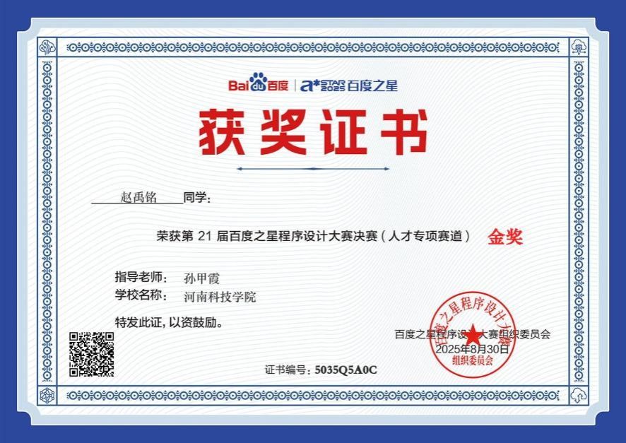 近日,由全国高等学校计算机教育研究会主办、清华大学出版社承办的第七届“码蹄杯”全国大学生程序设计大赛暨百度之星程序设计大赛(人才专项赛道)全国总决赛,在线上成功落下帷幕。我院学子在这场高水平赛事中凭借扎实的专业功底脱颖而出,斩获全国金奖1项、铜奖3项,创下我院在该赛事中的历史性突破。