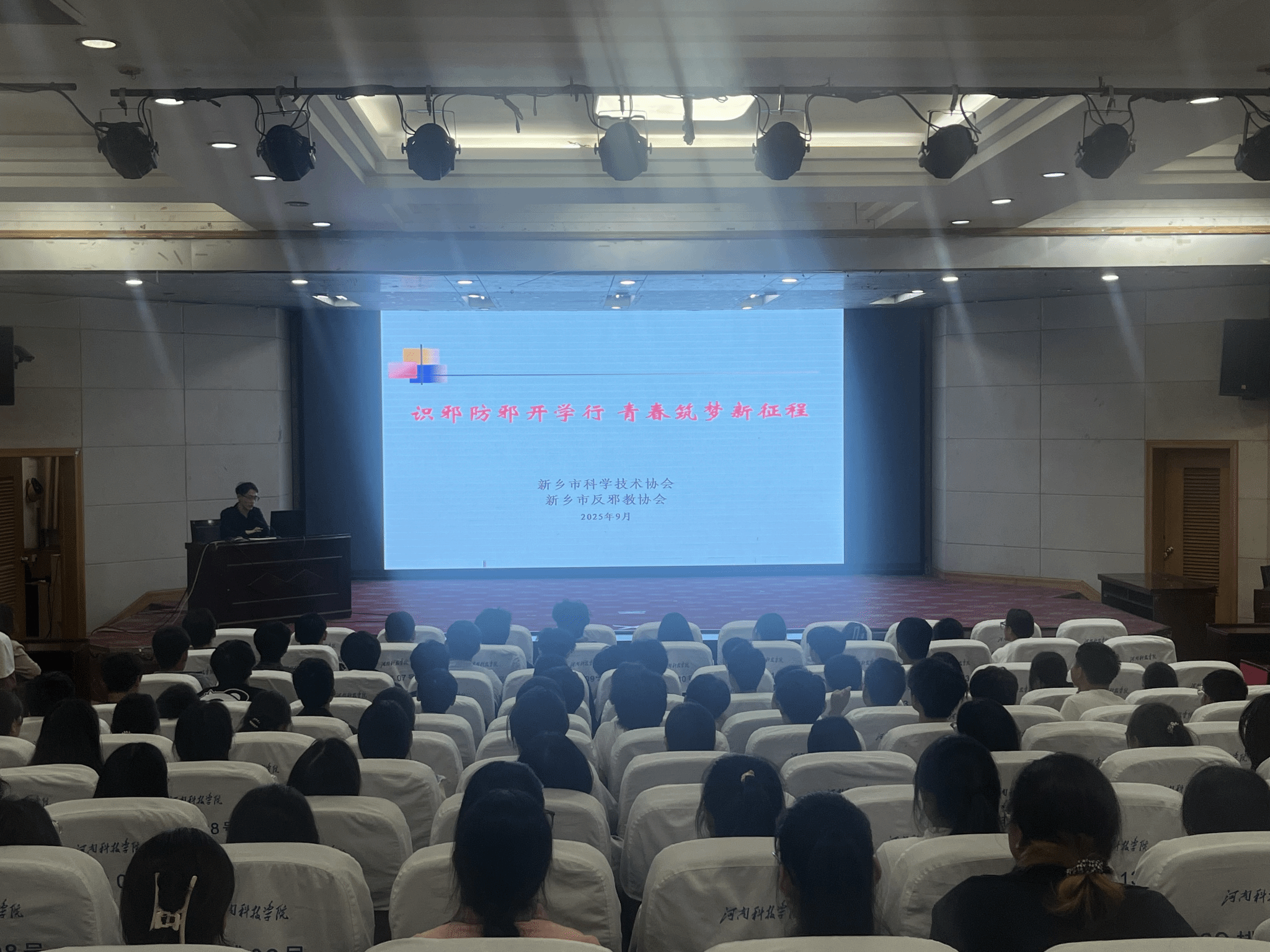 为增强2025级新生对邪教本质的认知,筑牢大学生群体反邪思想防线,9月18日下午,我院邀请新乡市科协、新乡市反邪教协会反邪教专员赵津以“识邪防邪开学行,青春筑梦新征程”为主题,为全体新生开展反邪教警示教育专题讲座,为师生带来一堂生动的“反邪必修课”。