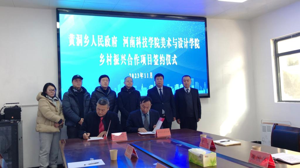 11月14日上午,我院与淇县黄洞乡人民政府乡村振兴合作项目签约仪式在黄洞乡东掌村举行。淇县县委副书记陈晓杰、黄洞乡党委书记陈培华等与我院副院长郑世华、党政办公室主任王奇男、环境设计专业建设责任人赵娅珺出席双方签约仪式,院长雷保杰与淇县黄洞乡乡长崔国伟代表双方签约。
