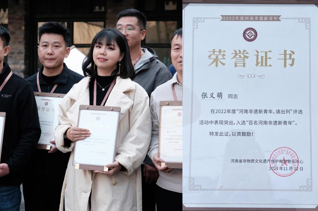 此次评选活动旨在积极探索非遗保护传承实践,提升河南非遗传承活动的影响力,评选历时近一年时间,经各级相关单位推荐,评审团研究审议等严格程序认定,张义萌老师从全省10000余名非遗代表性传承人中脱颖而出并获得“河南非遗新青年”称号。