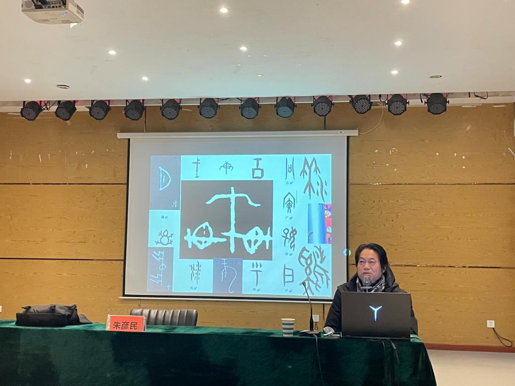 12月13日,我院在11号楼1楼排练厅举办“甲骨文与书法艺术”主题讲座。本次讲座诚邀南开大学历史学院朱彦民教授为主讲人,院党委书记张新词、院长雷保杰、副院长郑世华等相关领导、专业教师和200余名本科生、研究生到场聆听。副院长胡国锋教授主持讲座。
