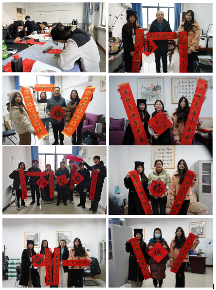 迎新春、贴福字、挂春联是中华民族的传统文化,是象征吉祥、表达人们向往美好生活的习俗。此次活动拉近了师生的情感距离,受到了师生们的一致好评,展示了我院学子扎实的专业功底和积极向上的精神风貌,为美好校园的建设营造了浓厚的文化氛围。