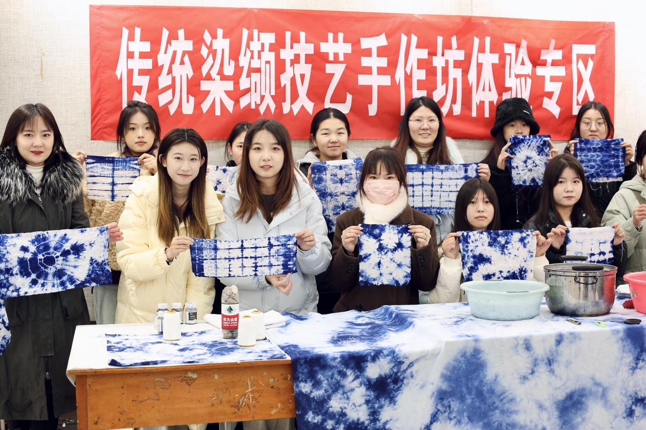 此次展览共展出76位同学近100套(件)作品,作品涵盖传统非遗扎蜡染等染织工艺、编织基础工艺、雕刻基础工艺等。展示作品经过数次筛选,优中选优,是对本学期相关课程教学成果的一次集中展示。展览现场,陈亚南老师带领学生举行了传统染缬技艺手作体验活动,给在场师生展示了传统染缬技艺相关制作流程,提升了大家的艺术观感体验。