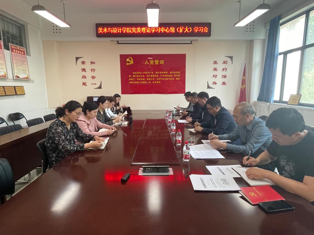 5月9日下午,美术与设计学院在11208会议室召开党委理论学习中心组(扩大)会议。化学化工学院党委书记孙震寰、校党委宣传部理论教育科科长杨运华应邀出席会议,学院党委委员、处级干部和党支部书记参加了会议。会议由院党委副书记徐小玉主持。