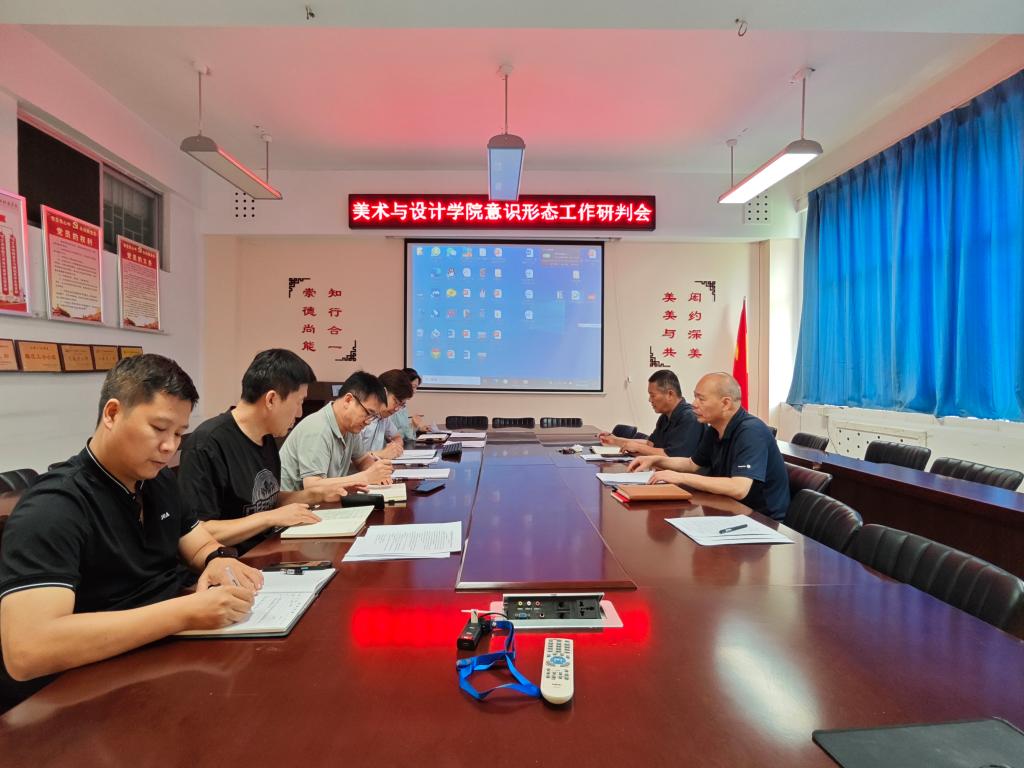 6月24日上午,为进一步落实意识形态和安全稳定工作,美术与设计学院在11208会议室召开意识形态工作研判会。学院全体领导班子、党政办公室主任参与会议。会议由学院党委书记张新词主持。