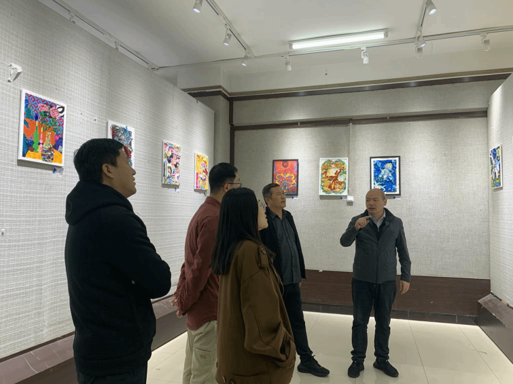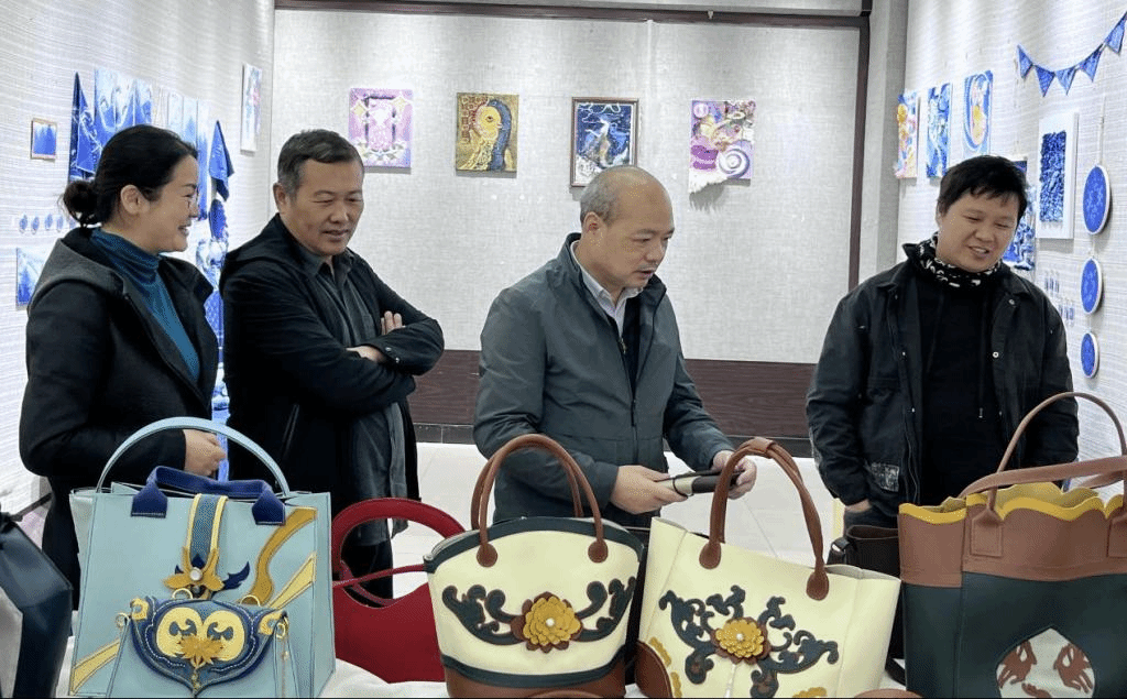 在参观展览的过程中,张新词对展出的作品给予了高度评价。他指出,这些作品不仅技艺精湛,而且创意独特,具有很强的艺术感染力。同时,张新词书记还强调了作品转化的重要性,他鼓励学生们要积极思考如何将这些优秀作品转化为实际产品,通过直播售卖等新型销售方式推向市场,实现创新创业的梦想。
