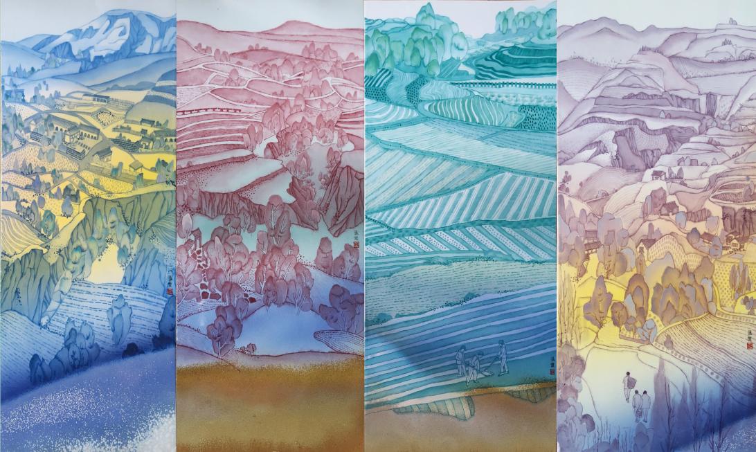 作品名称:《桃园春晓系列》瓷板绘画 作者:张杰