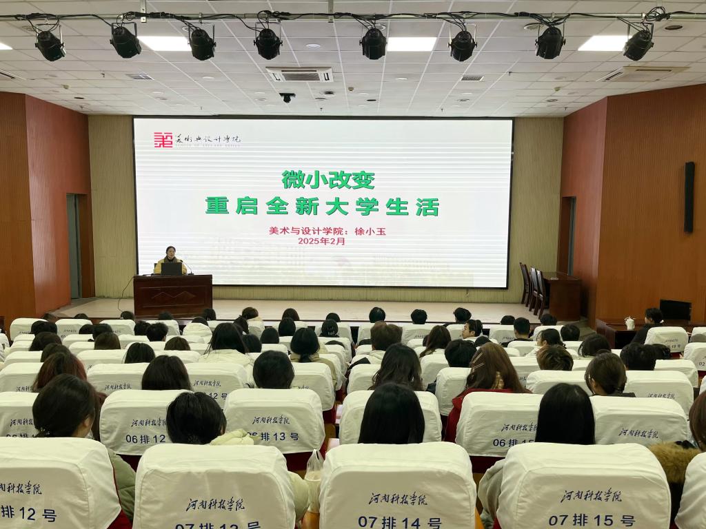 3月3日和4日上午,美术与设计学院党委副书记徐小玉在图书馆一楼报告厅讲了题为《微小改变 重启全新大学生活》的春季开学思政第一课。全体2024级270余名同学分两批聆听了讲座。