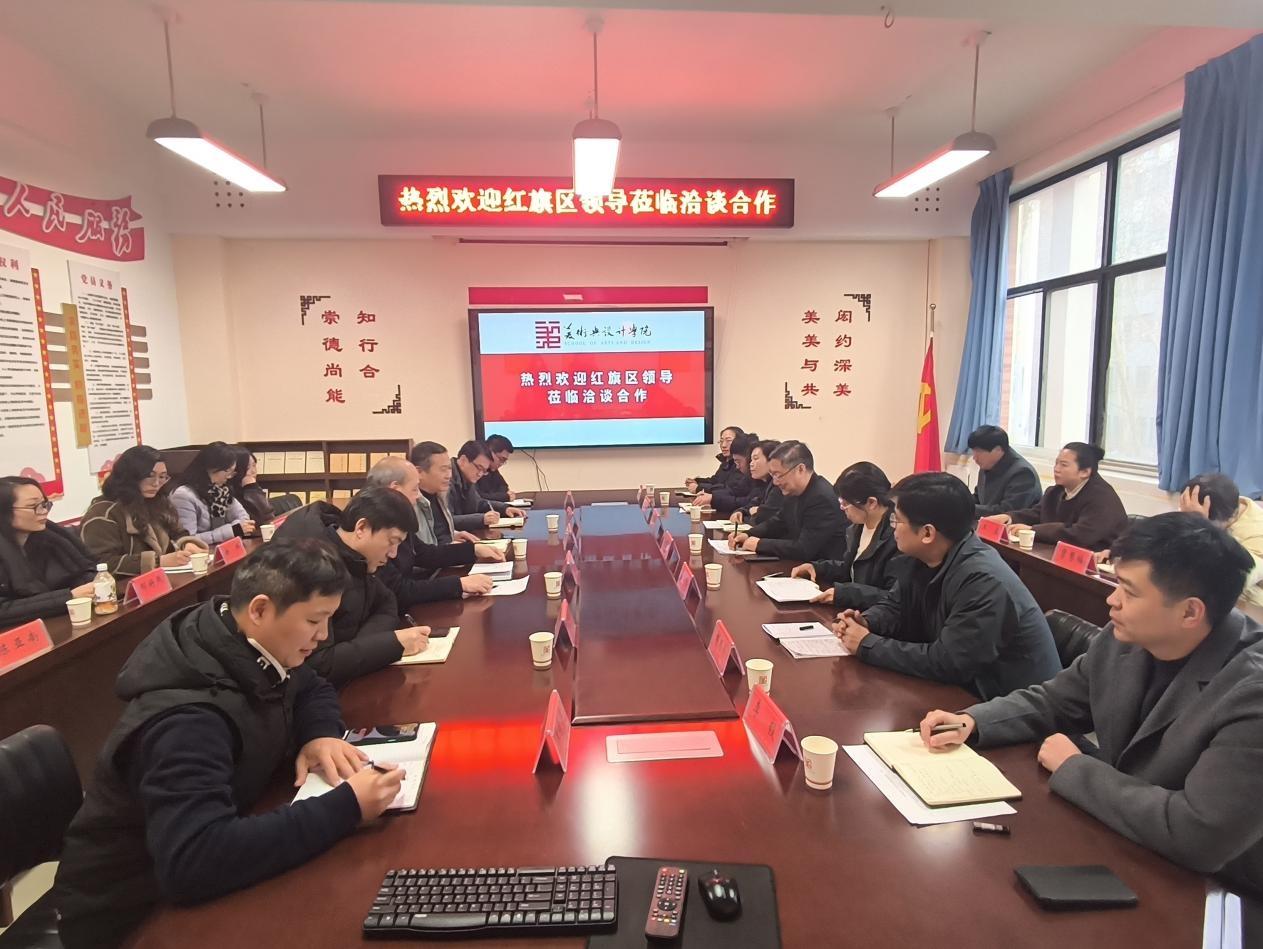 美术与设计学院党委书记张新词对红旗区领导的到来表示了欢迎。院长雷保杰对学院的基本情况进行了介绍,重点介绍了学院在艺术参与乡村振兴、美丽乡村、三农传播等方面所做的工作,详解介绍了学院的成功案例和相关项目经验。
