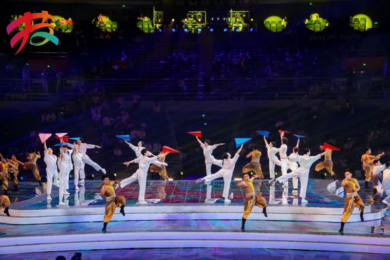 闭幕式上,12名同学们为现场观众带来了集舞蹈、太极和武术等多种形式为一体的综合节目《2025相约河南》。节目《2025相约河南》,由一名独舞演员以电子屏展现的一幅幅河南历史人文及河南地标性建筑图片为背景引入,接着是河南太极拳及武术表演,最后是我校学生的精彩呈现,整个节目从古至今,尽显河南博大精深的传统文化底蕴。