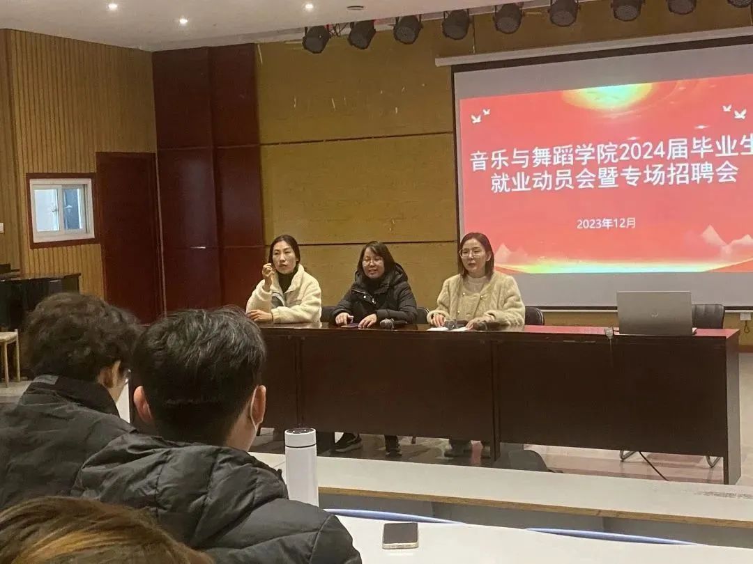 为切实做好毕业生就业工作,搭建毕业生与用人单位的交流和双选平台,12月1日,音乐与舞蹈学院邀请晓雯音乐教育集团在11#音乐厅举行招聘宣讲会。学院党委副书记熊慧娟、团委书记左玉含、团委副书记张腾玮及学院全体毕业生参加会议。